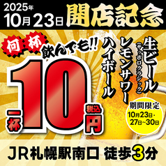 ・・・生ビール、ハイボール等何杯でも1杯10円★ - 札幌かに本家 札幌駅前本店